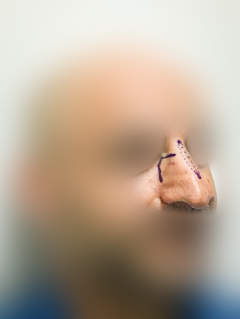 Μετά την έγχυση του τοπικού αναισθητικού θα γίνει η κατάλληλη τομή και τα μαλακά μόρια θα αποκολληθούν απο τον χόνδινο και τον οστέινο σκελετό της μύτης.
